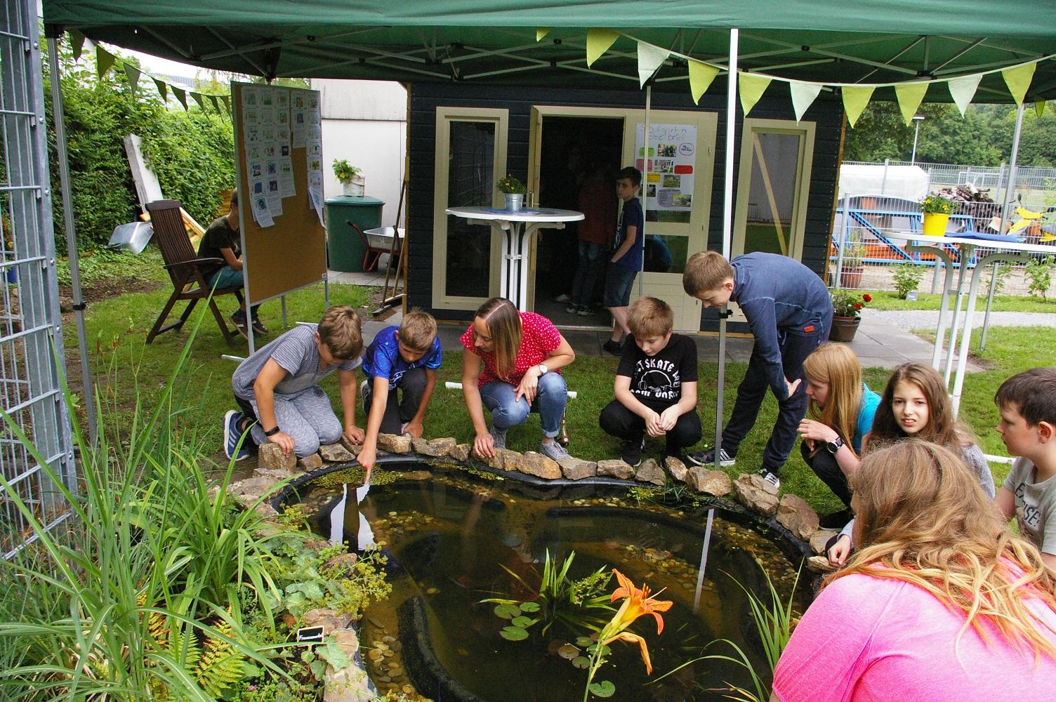 „Wenn du einen Garten und eine Bibliothek hast, wird es dir an nichts fehlen“, sagte einst Marcus Tullius Cicero. Eine Schulbibliothek besitzt die Realschule plus Lahnstein schon längst. In diesem Schuljahr kommt nun auch ein schuleigener Garten dazu. Der Idee, die bereits vor einem Jahr in den Köpfen der naturinteressierten Schüler zu geistern begann und die auf die vollste Unterstützung ihrer Lehrer – Frau Anheier-Becker, Frau Witt und Herrn Linn – stieß, folgten Monate der Konzepterarbeitung und minutiösen Planung. Richtig loslegen konnten die Teilnehmer der Garten-AG erst nach dem ersten Spatenstich, welcher im März dieses Jahres erfolgte. Nun wurde der Boden fleißig umgegraben und gelockert, Kartoffeln, Gemüse und Obstbäume wurden gepflanzt und ein Teich mit winzigen Molchen angelegt. In einem Projekt des Technikunterrichts wurden sogar zwei Gartenhäuschen errichtet.
