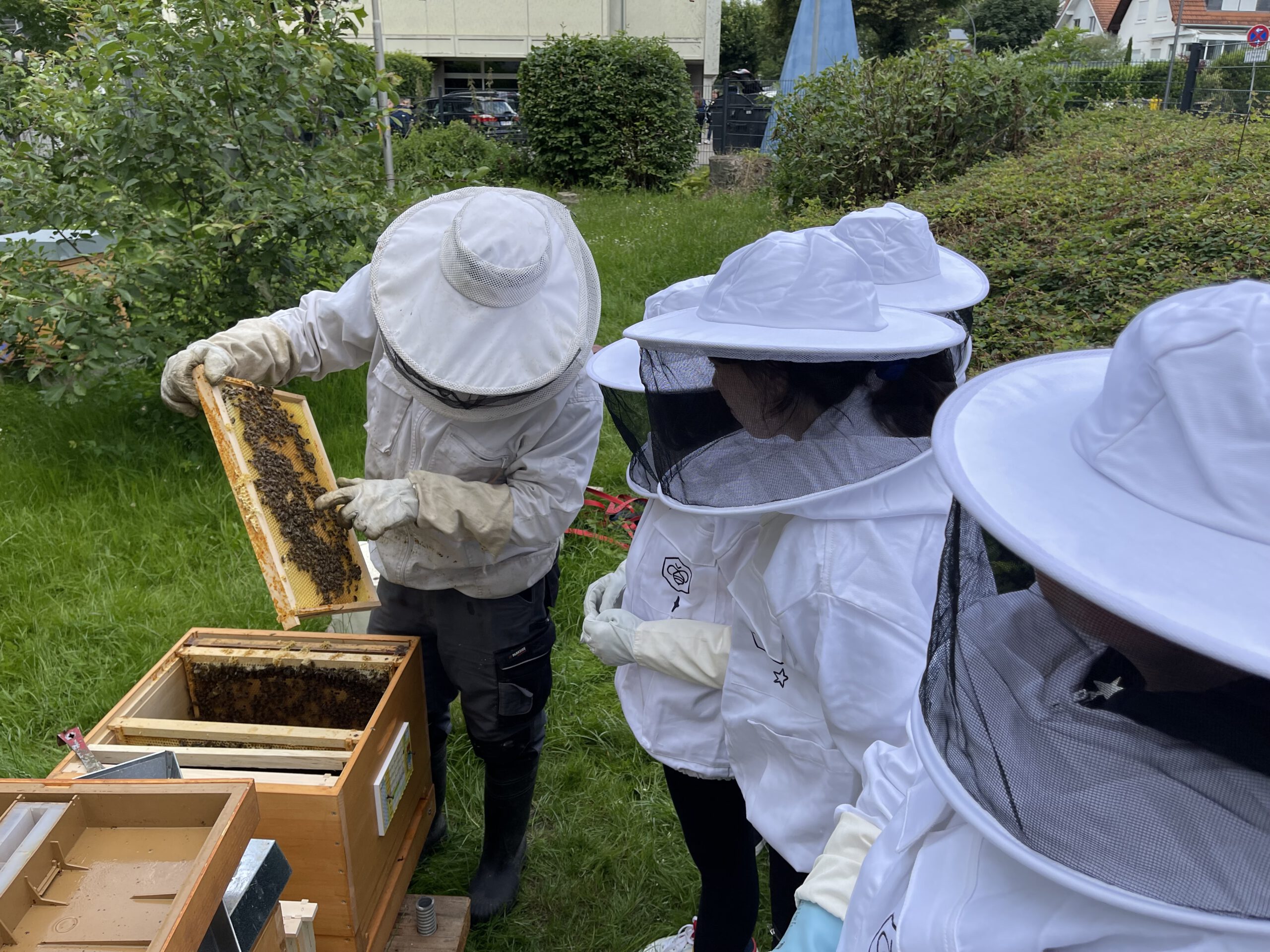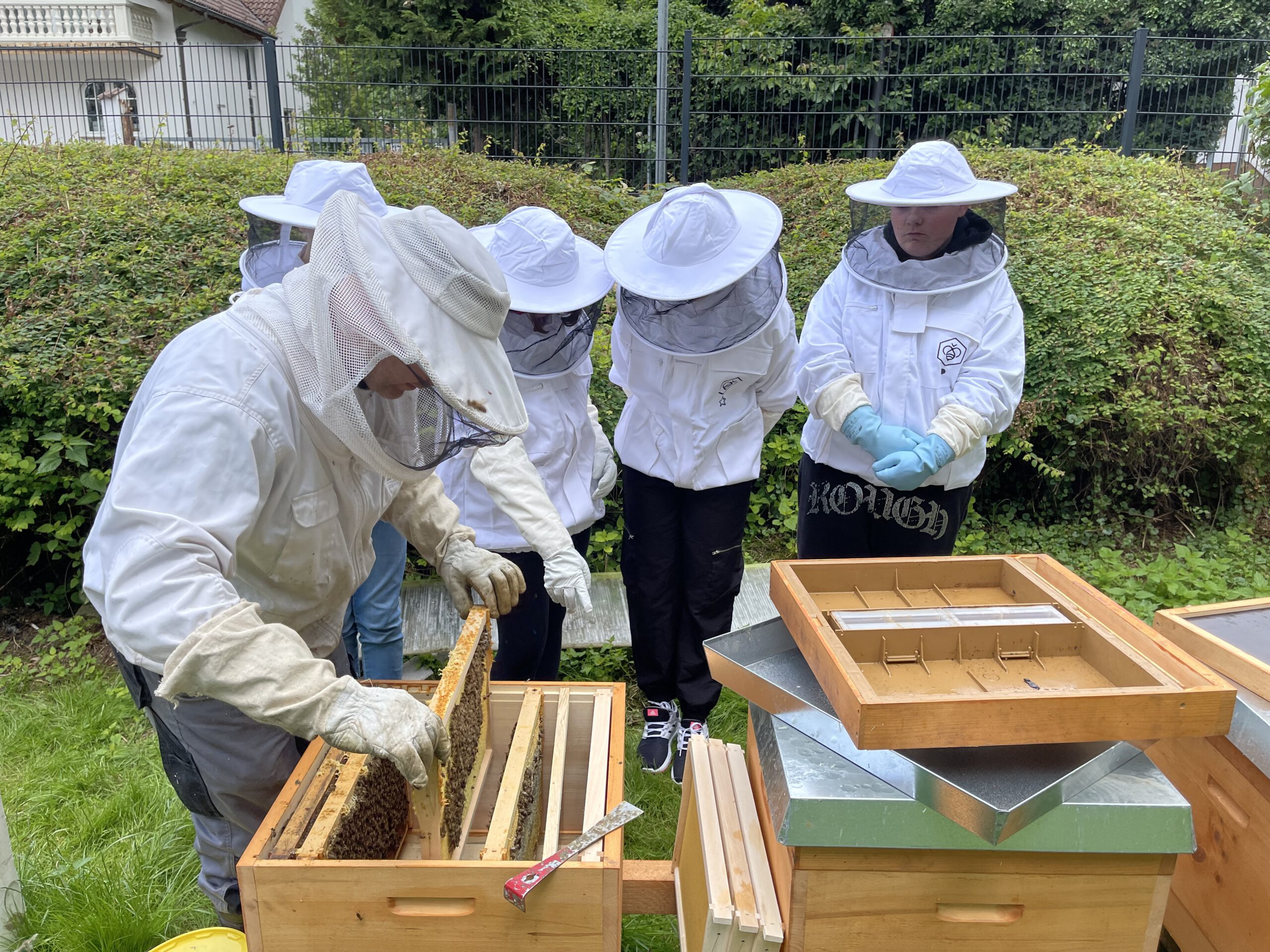 Die Bienen AG hat vor Kurzem nachgeschaut, wie sich die einzelnen Beuten (= die Behausung von Bienen in einem Bienenstock) entwickelt haben. Dieser Vorgang ist wichtig, um vereinzelt schwachen Völkern bisschen unter die Arme greifen zu können. Insgesamt ist die AG jedoch zufrieden. Die Beuten wachsen stetig und entwickeln sich prächtig!
